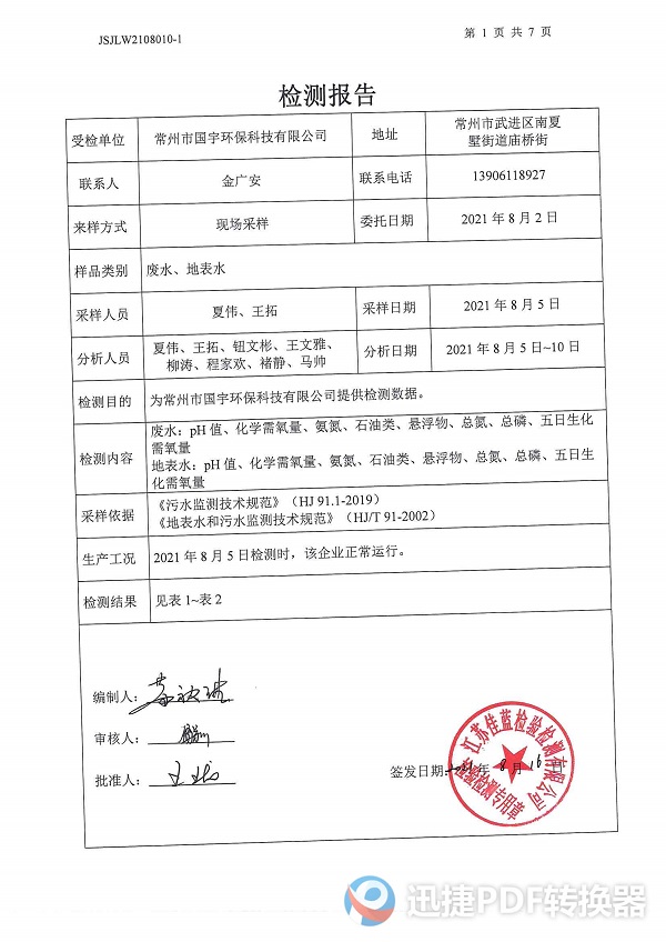 2021年下半年檢測(cè)報(bào)告--廢水、地表水