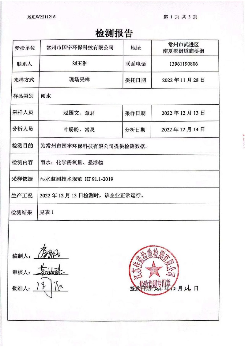 雨水檢測(cè)報(bào)告